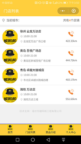 多门店共享数据,可切换不同城市显示,搜索门店并显示门店详情。